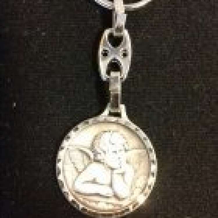 Text auf Rückseite: Gott schütze dich, oval, Durchm. längs 2.8 cm