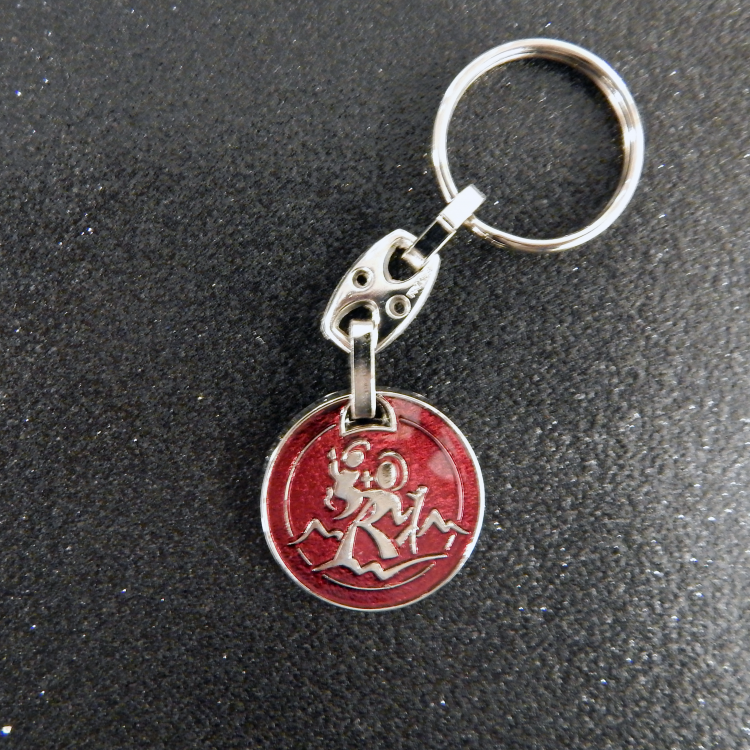 Rückseite / Komm gut heim, Hintergrund rot/lila, Durchm. 3 cm