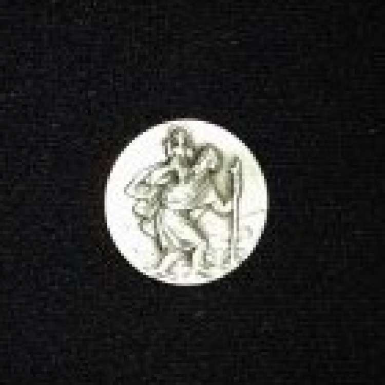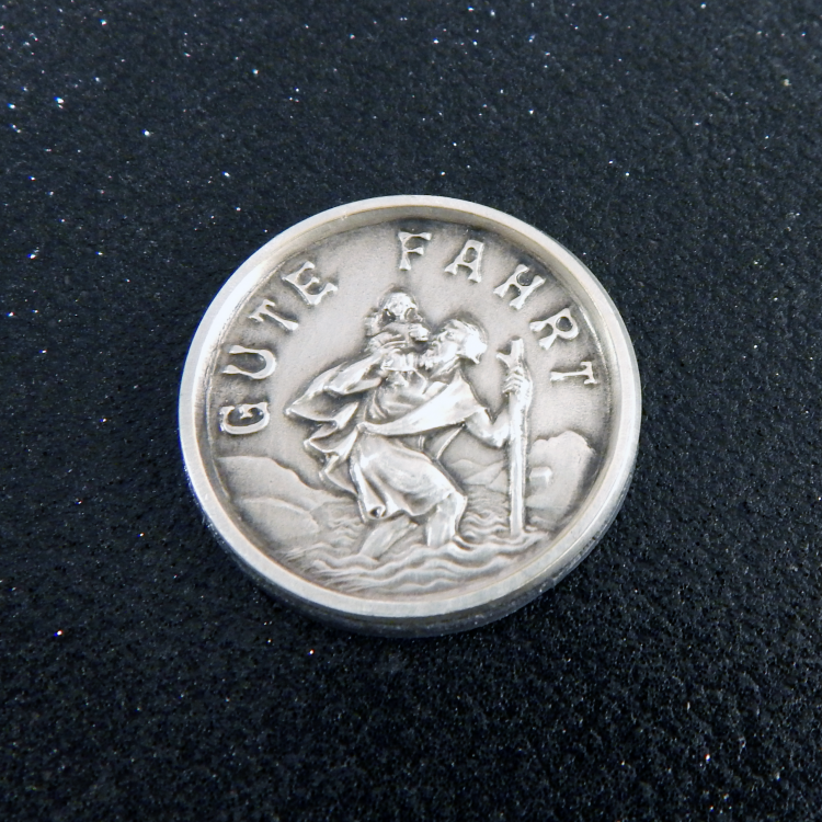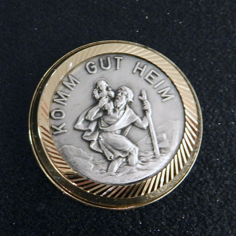 Text: komm gut heim, mit glänzendem schmalen Goldrändli, Durchm. 2.5 cm
